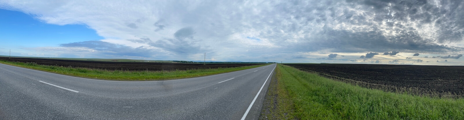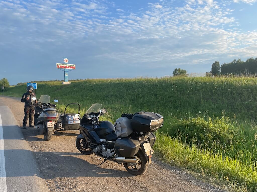 Я выехал довольно поздно и встретиться с Лехой в Мариинске, как мы планировали изначально, не получилось. Хоть и открылась дорога мимо Кемерова, которая сэкономила мне часа полтора, все равно я безнадежно отставал. Вот пролетел Звездный мост, Мариинск, в Ачинске повернул направо в сторону Ужура и наконец-то догнал Леху в чистом поле.